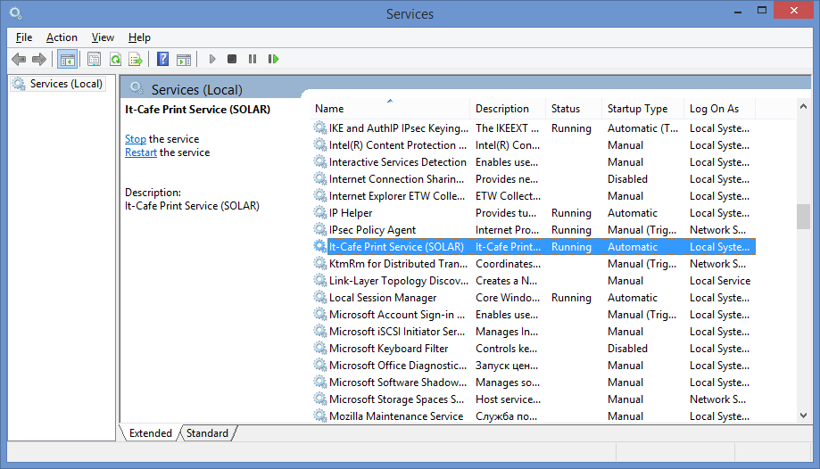 Запускаем сервис Служб и ищем нашу Службу печати: It-Cafe
