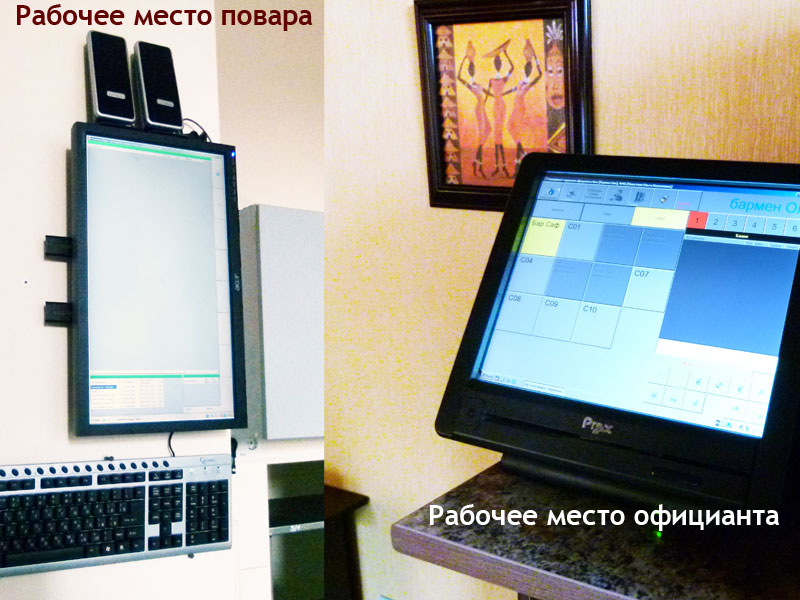 В данном варианте автоматизации учета кафе применены обычные компьютеры.